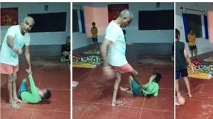 الفيديو أظهر المعلم، فيريش هيريماث، وهو يصرخ في وجه الطالب لعدة دقائق قبل أن يطرحه أرضاً ويوجه له ركلات متكررة، وسط توسلات الطالب بالتوقف، دون أي رحمة.