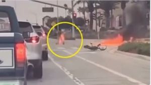 الوكيل الإخباري- وثّق مقطع فيديو في كاليفورنيا لحظة انفجار دراجة نارية وتحول سائقها المراهق إلى كتلة من اللهب، بعد اصطدامه بسيارة عند تقاطع في مدينة ساليناس.