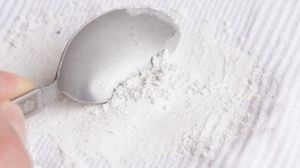 رشي القليل من النشا أو بودرة الأطفال على البقعة واتركيها 15–20 دقيقة،
