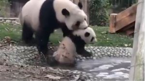 الوكيل الإخباري- استحمام إجباري.. صغير الباندا يحاول الهرب لكن والدته مصمّمة على تنظيفه