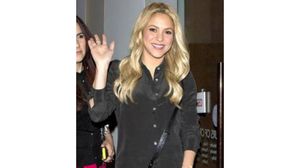 وبدت شاكيرا متألقة بضحكتها الجذابة، وارتد الجينز مع قميص أسود .